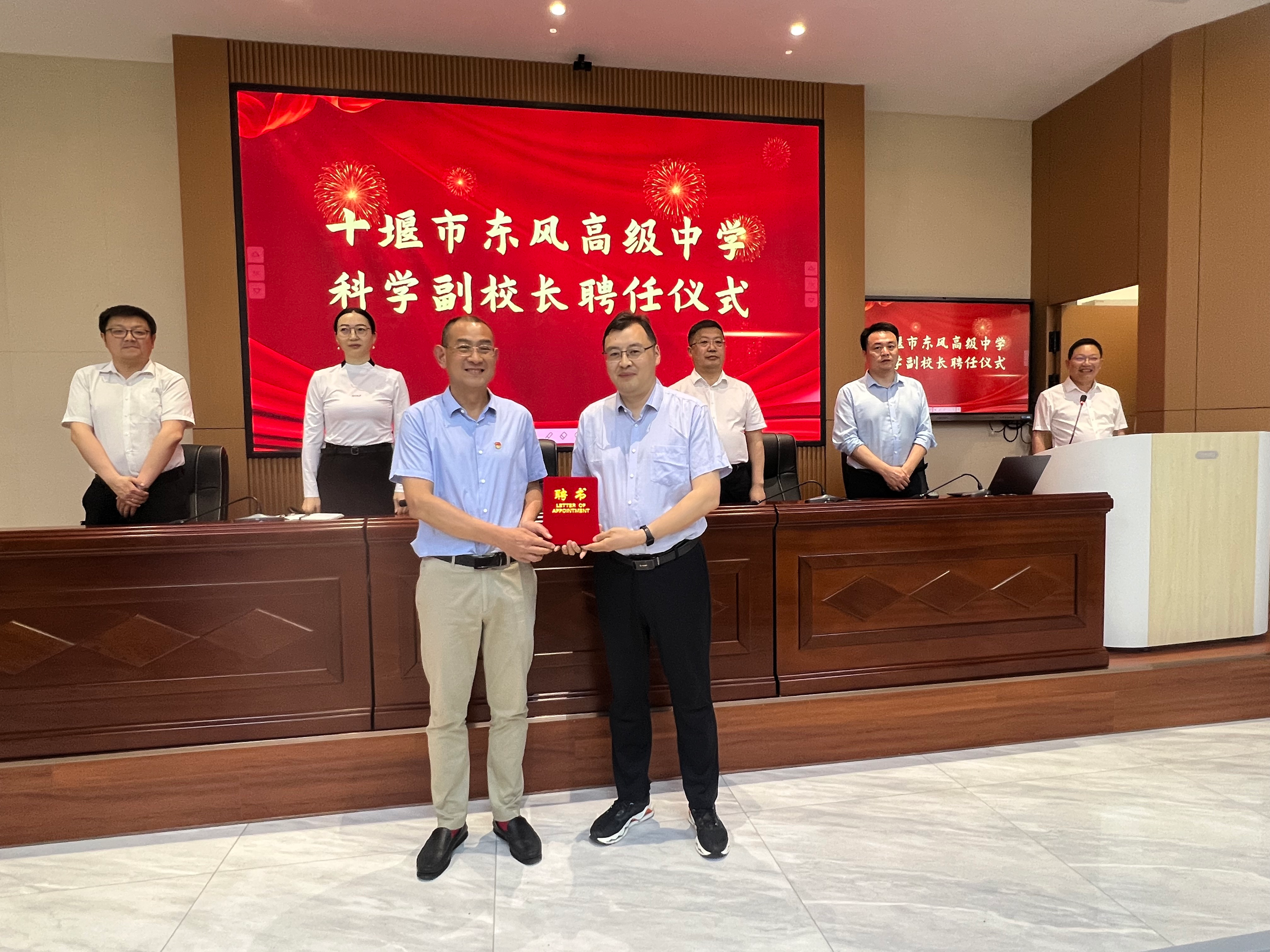 (新闻来源:十堰市东风高级中学官网) 4月21日下午,东风高中举行科学副校长聘任仪式,正式聘请bv1946伟德国际徐龙艳教授担任科学副校长。伟德(国际)唯一官方部分领导嘉宾出席活动。学校党委书记杨德其,党委副书记、校长左自红,副校长张平,教务处主任陈先龙,教务处督学廖三红以及2024级、2025级高峰班学生共同见证这一推动学校科学教育高质量发展的重要时刻。会议由副校长张平主持。