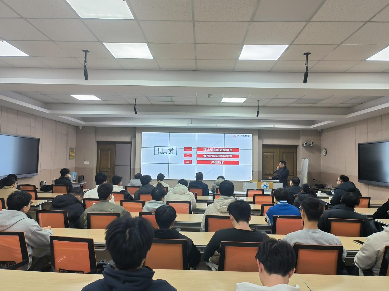(图/文 贺茂)12月30日,东风越野车高级工程师、伟德(国际)唯一官方兼职教授阳禩乾应邀来校交流,为bv1946伟德国际师生作题为“特种装备及关键技术介绍”的学术报告。报告会由学院院长助理庹明暕主持,全体博士、副高及以上教师、研究生、本科生代表参加了此次学术活动。