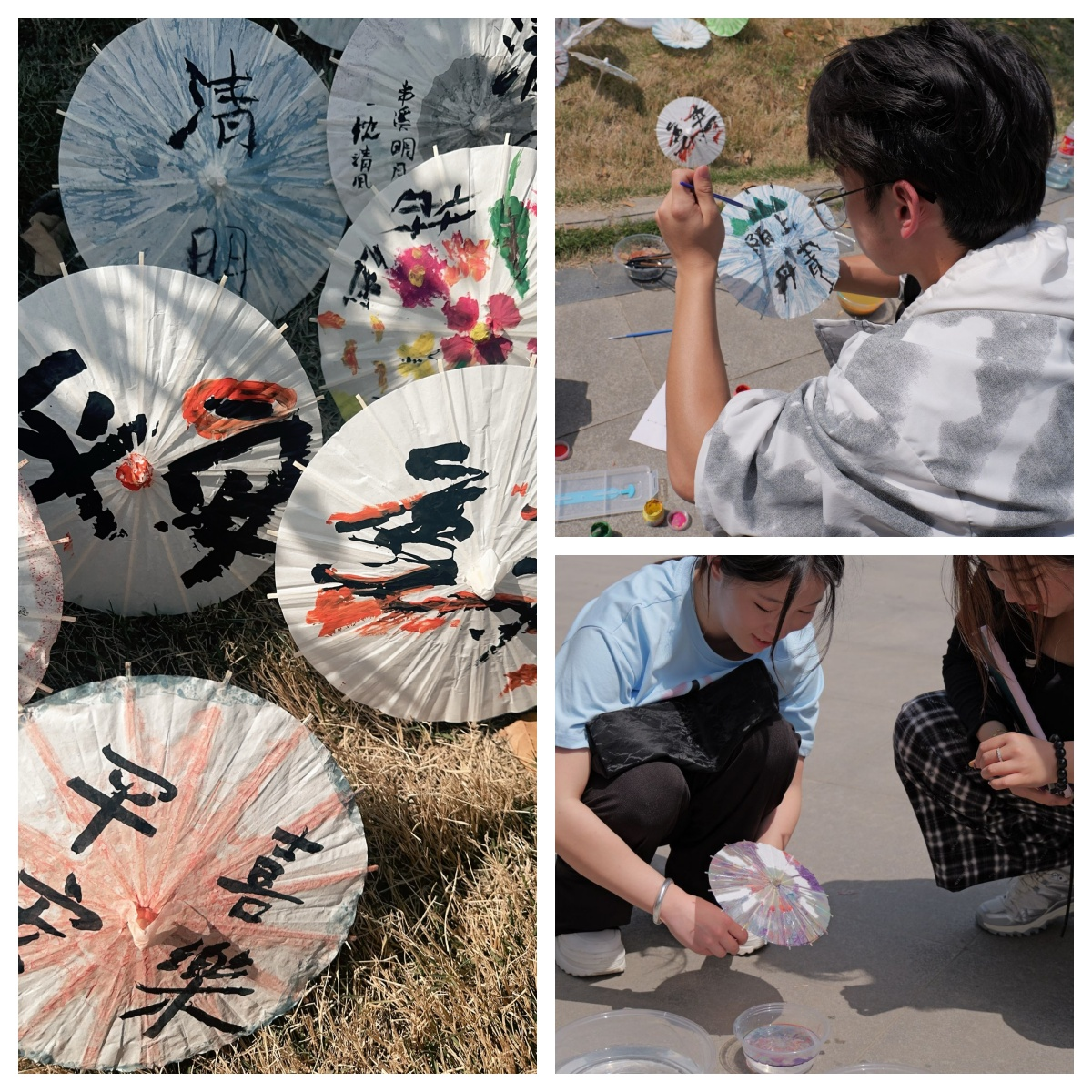 活动现场分为“古法制作”和“创意彩绘”两大体验区。在制作过程中,工作人员先示范制作漆伞的流程和手法,随后,参与者们组装伞骨,挑选配色,滴漆入水,勾画纹路......在晾干过程中,参与者们交流着各自的创意,成就感十足。“这次活动让我对传统工艺有了更直观的认识”一位参与活动的学生表示。经过一段时间的耐心等待,一把把风格各异、融合传统与现代元素的油纸伞作品逐一诞生。
