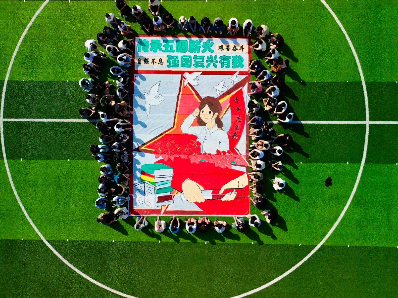 此次活动通过纳斯卡巨画涂鸦形式,以五四精神为指引,增强青年学子的爱国情怀与责任担当,促进党建与团建的深度融合,为学院人才培养与文化建设注入新活力。未来,学院将继续以党建为引领,带领青年学生传承五四精神,在新时代积极投身民族复兴征程。(审稿 周鹏)