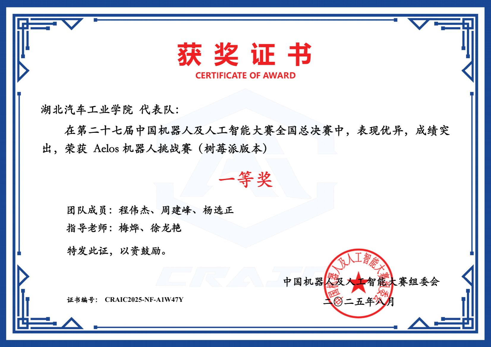 带着这份执着,他征战各类国家级、省级赛场,屡创佳绩:在第二十四届全国大学生机器人大赛 ROBOTAC 挑战赛中,与团队默契配合、精准操控,斩获速胜挑战赛三等奖;“西门子杯” 中国智能制造挑战赛中,面对复杂技术难题与设备短缺的困境,日夜攻关,一举拿下国赛一等奖与省级特等奖;中国机器人及人工智能大赛中,凭借扎实功底与过硬心理素质,从省级赛场突围,斩获全国一等奖。此外,他还在全国大学生数字媒体科技作品及创意竞赛、中国高校计算机大赛 — 网络技术挑战赛华中赛区中收获多项三等奖,用一张张奖状,书写了深耕专业的奋进篇章。