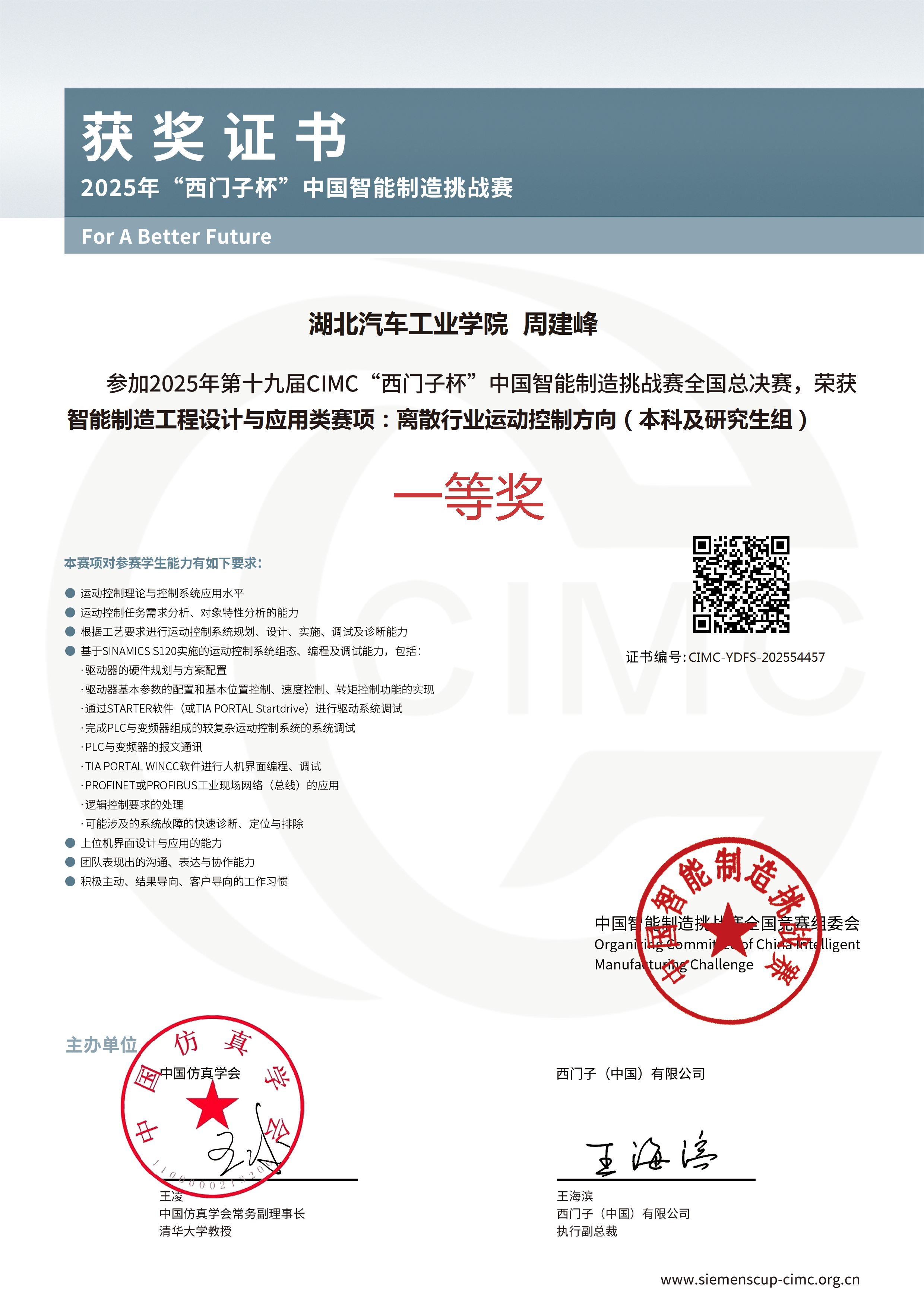 【个人简介】周建峰,男,中共预备党员,bv1946伟德国际自动化专业 2023 级本科生。现任自动化 232 班团支书、“西门子” 校园学习中心大使、自动化 252 班导生,曾任第五届团委学工委秘书部部长、学院第一届分团委思政部部长。入校两年来,他深耕专业、勇攀竞赛高峰,斩获 “西门子杯” 中国智能制造挑战赛全国决赛一等奖、中国机器人及人工智能大赛全国决赛一等奖等多项国家级、省级奖项;深耕团学工作、热心志愿服务,累计志愿时长超五百小时,先后获评 “优秀共青团员”“三好学生”“优秀志愿者”“优秀迎新工作者” 等多项荣誉,以综合实力斩获国家奖学金。